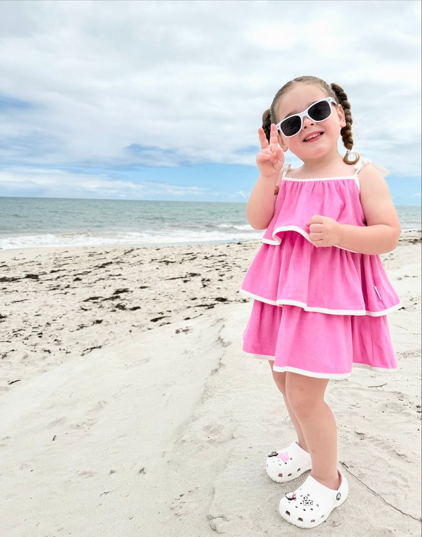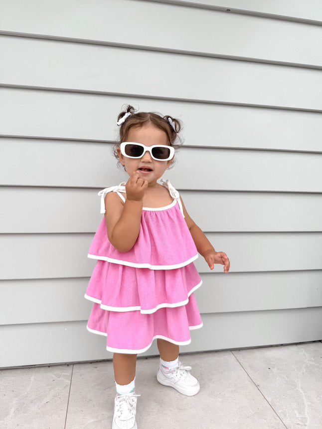 Our Terry Twirl Dress is designed for every girl who loves to twirl! Featuring a stunning pink hue, this dress is perfect for adding a playful pop of colour to any occasion. Made from soft, lightweight terry towelling cotton, she is perfect for a day of adventures or a special celebration. With adjustable straps, your mini will be wearing this beauty for months ahead. We know this dress will have your little mini spinning in delight and looking adorable!
