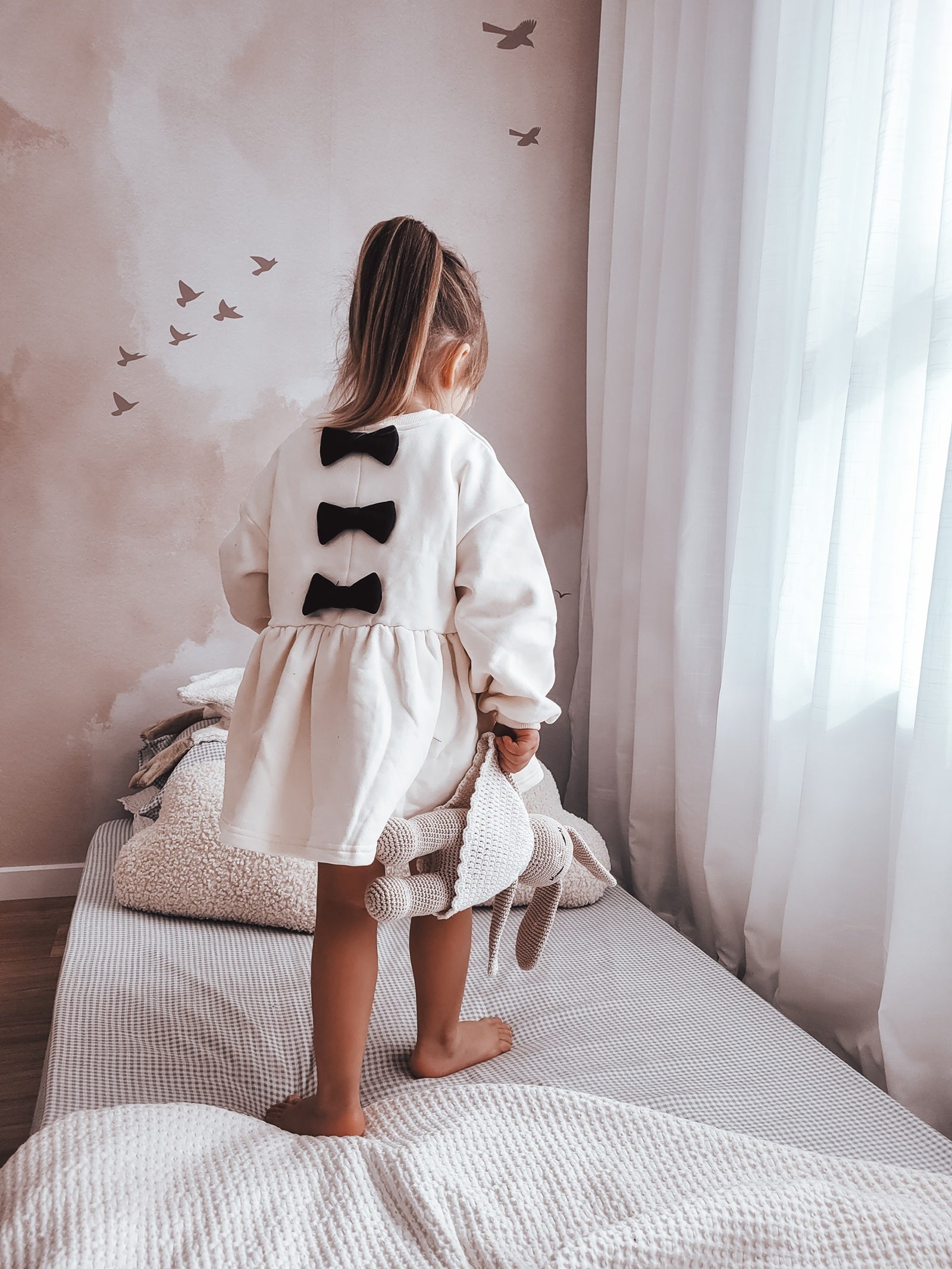 The quality of these clothes are just next level! They are thick and feel so soft. I bought the girls dresses’ next size up, so we are yet to wear them. But the teddy onsie looks so cute on my daughter! Love it!